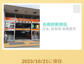 | 岐阜茜部簡易郵便局 | ぎふあかなべ | 24844 | yu21-0030 | Y01074 | 2 | |